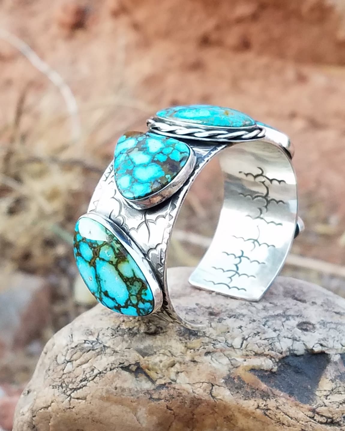 This is a Beautiful cuff bracelet that can be worn and enjoyed for years to come, and it would make a wonderful gift for yourself or anyone who loves Turquoise and Sterling Silver!